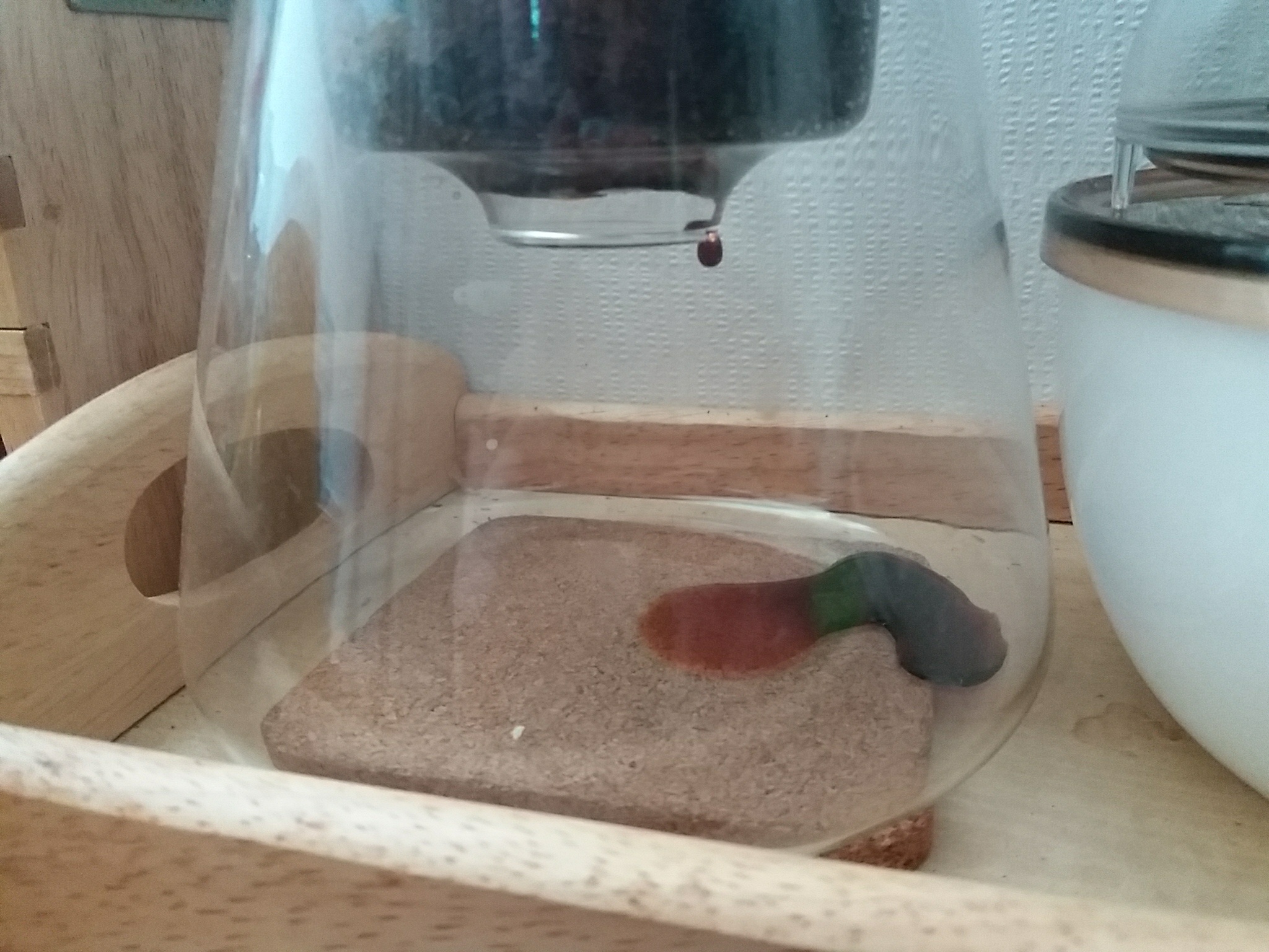 시간이 좀 지나면 드디어 더치커피 원액이 한 방울씩 떨어지기 시작합니다.