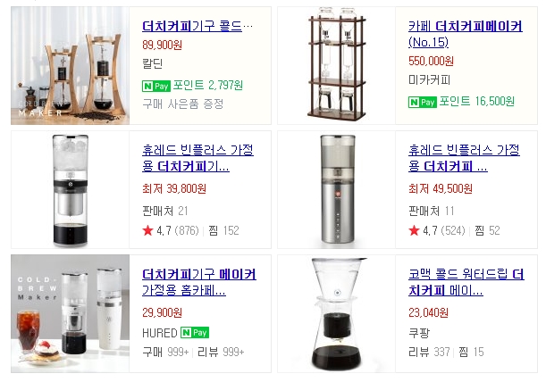 더치커피 메이커는 위 사진처럼 가격이 천차만별인데