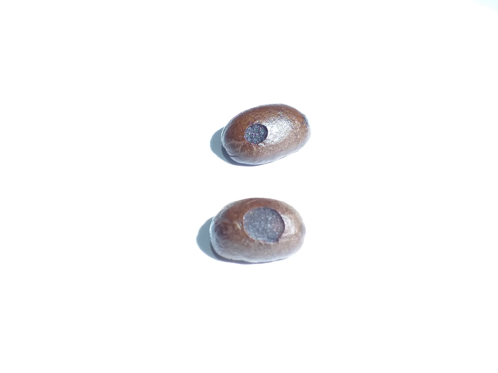 두 개의 원두에서 둥그렇게 떨어져나간 자국들이 보입니다.