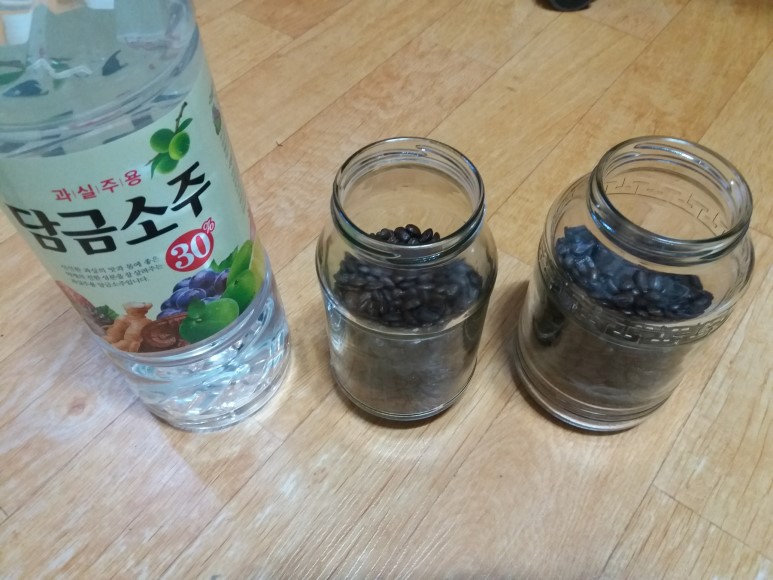 커피원두와 설탕과 담금주가 있으면 되는데 설탕은 흑설탕이 좀 더 맛이 좋아서 추천합니다.