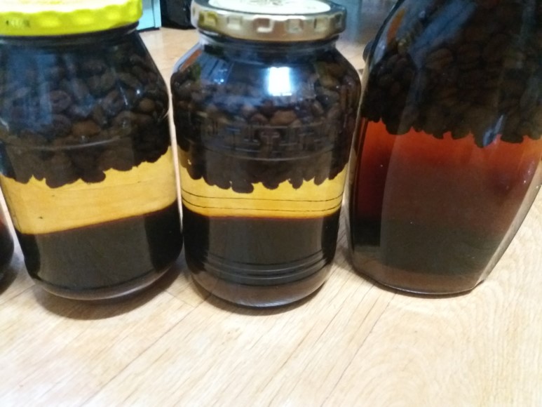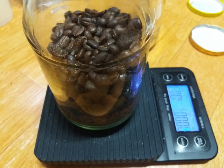 가지고 있는 원두와 흑설탕의 양으로 만들다 보니 유리병 3개에 채워지게 되었습니다.