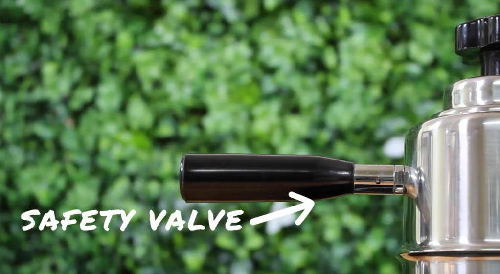 5~6분 정도 시간이 지나면 손잡이 부분 쪽에 안전밸브 쪽에서 수증기나 물이 나오게 되면 준비가 완료된 것입니다.