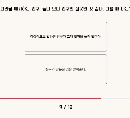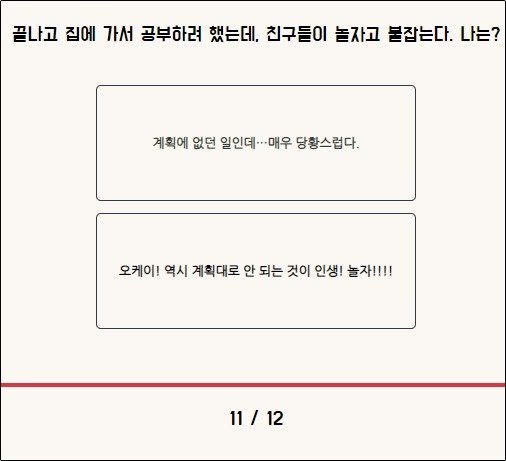 각 상황에는 2가지 선택지가 나옵니다.