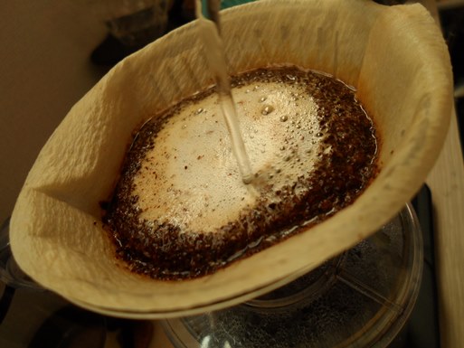 원두가 전체적으로 적셔질 정도로 물을 붓고,