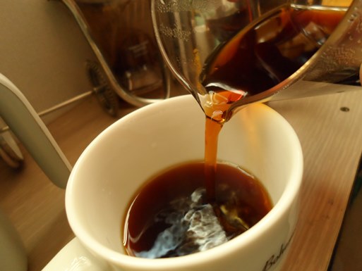 이렇게 추출된 커피를 머그잔에 옮겨담습니다.