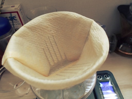 플라스틱 칼리타 드리퍼에 종이필터를 씌우고,
