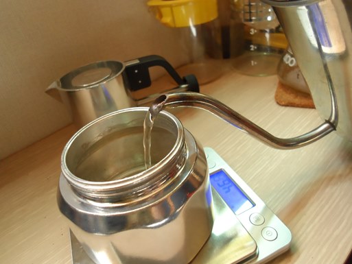 에쏘팟 하단 보일러에 물을 60ml 담아줍니다.