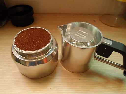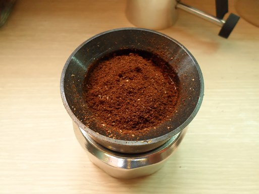 에쏘팟 도징링을 이용해 바스켓에 원두를 넣어주고,
