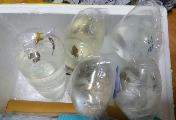 생물이기에 스트레스를 받았을 거 같아 빨리 꺼내 주려고 스티로폼 박스를 오픈하는 순간