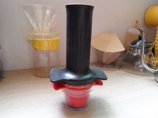 뜨거운 물을 붓고, 눌러주면 에스프레소가 추출된답니다.
