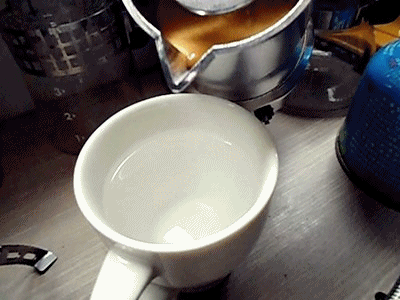 그리고 추출된 에스프레소를 뜨거운 물에 부어줍니다.