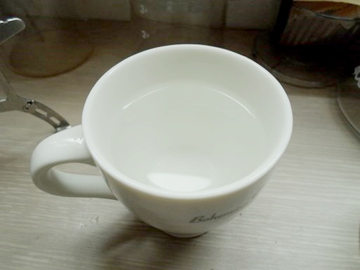 커피가 추출되기 전에 따뜻한 물을 잔에 담아놓았습니다.