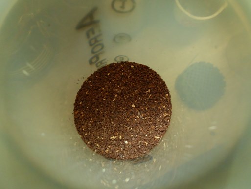 에어로프레스를 잡아 내리면 위로 커피찌꺼기가 쑥~~