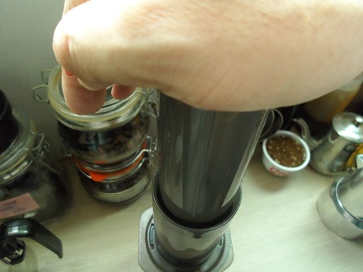 이제 손으로 에어로프레스를 눌러 커피를 추출해주면 되는데,