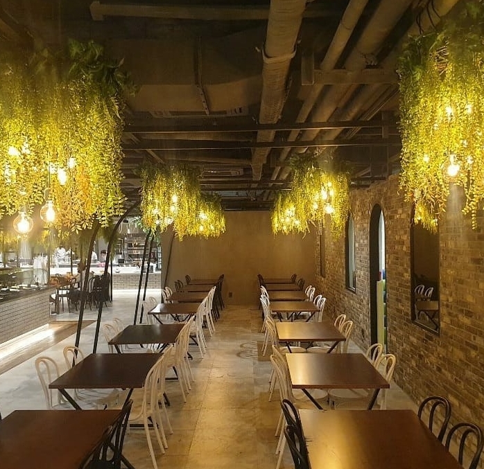 내부 인테리어는 가짜식물들과 전구를 이용해