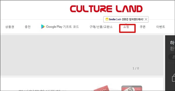 컬쳐랜드 홈페이지에서 구매/선물/교환소 → 상품권 교환소 를 클릭합니다.