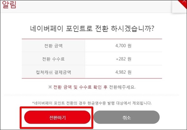 3. 충전된 컬쳐캐쉬를 네이버페이로 전환하기
