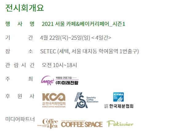 2021년 첫 커피행사로 서울카페&베이커리페어가