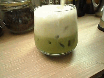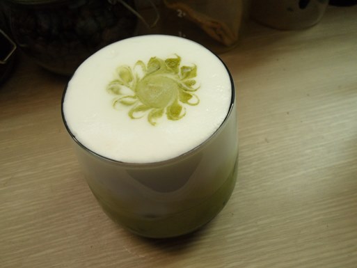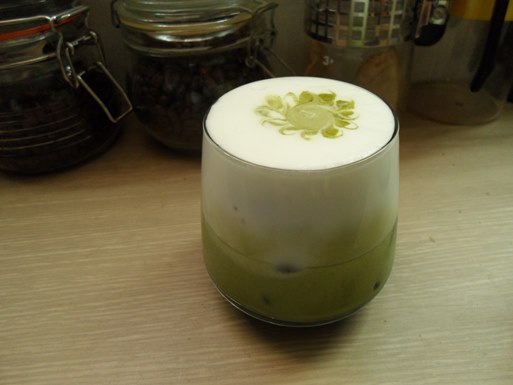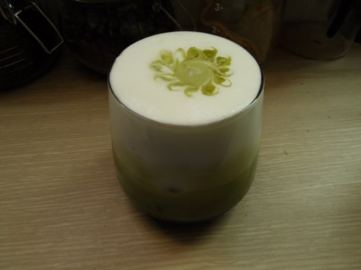 우유거품과 말차라떼가 층을 이루는 모습이 예쁘네요.