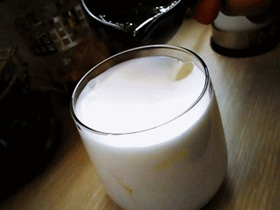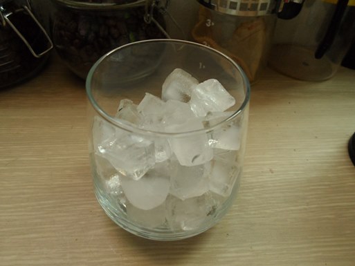 그리고 베이스로 얼음잔에 우유 150ml와 얼음을 채워넣었습니다.