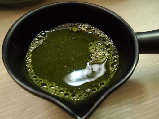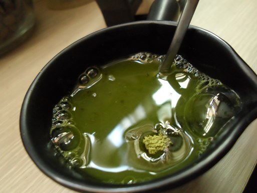 뜨거운 물 30ml를 넣어 말차파우더를 녹여줍니다.