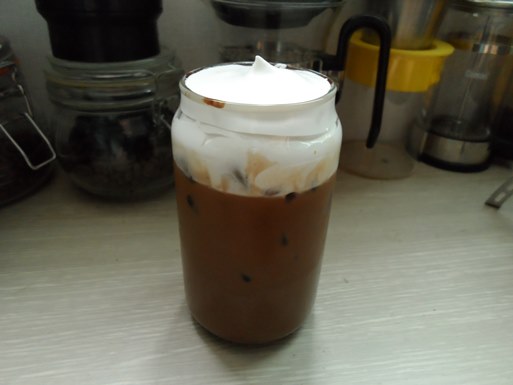 꾸덕꾸덕한 휘핑크림이 되는데, 스푼으로 떠서 아이스카페모카 위에 올려주면 완성!