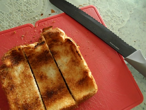 식빵이 구워지면 먹기좋게 9등분으로 컷팅해줍니다.