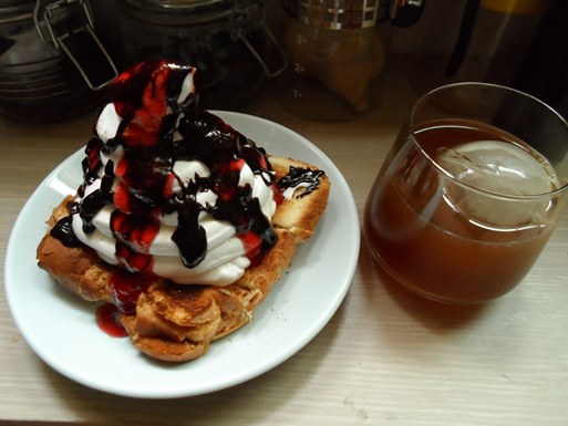 ▶ 식빵, 휘핑크림, 초코소스, 딸기원액(스무디액)