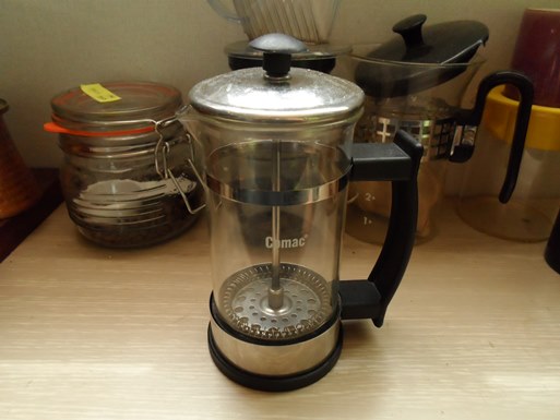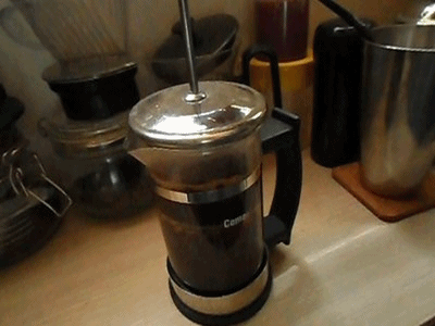커피와 자스민플라워티가 들어간 프렌치프레스 모습입니다.