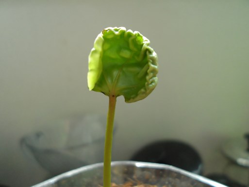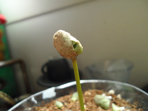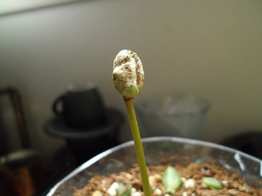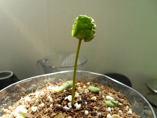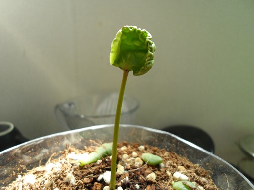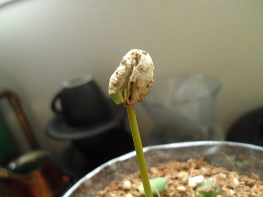 커피씨앗이 발아하고 흙위로 얼굴을 보였을때에,