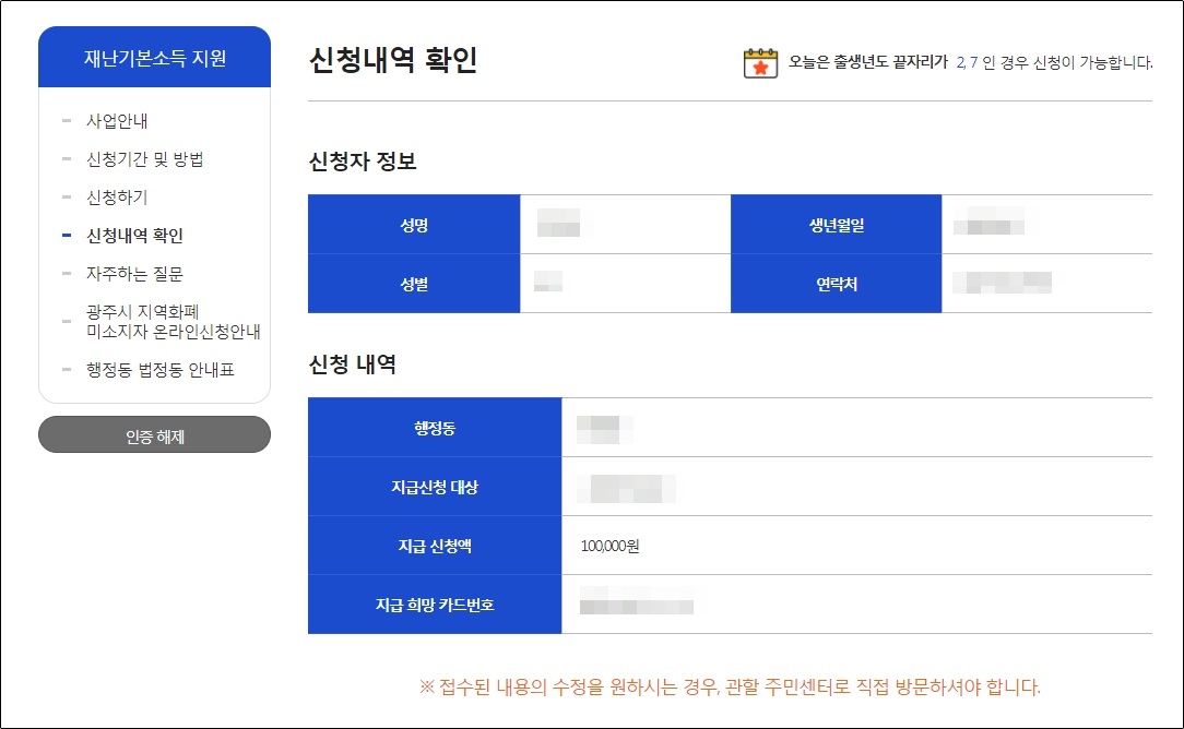 이로써 경기 광주시 재난기본소득 온라인신청이 완료되었고,
