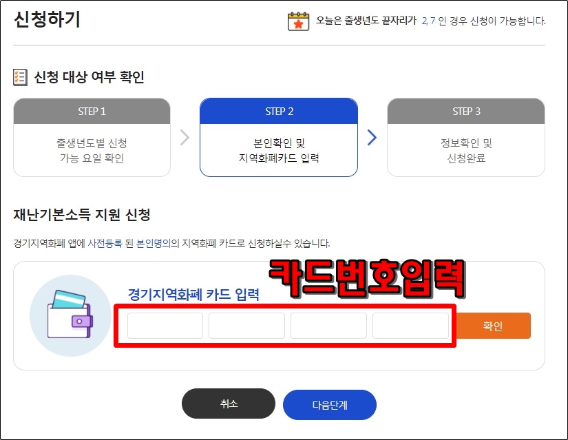 본인인증을 마치면, 소지하고 계신 경기지역화폐 카드번호를 입력해 줍니다.