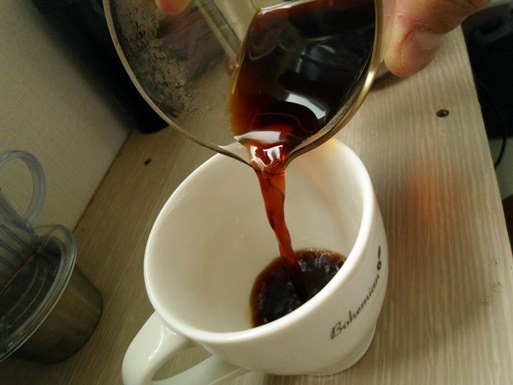 다만 레시피를 변경한 것은 물의 온도와 추출커피의 양을 달리하였습니다.