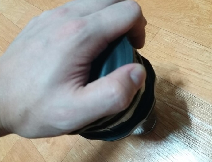 2분 30초 정도 지나면 머그컵이나 텀블러 위에 얹어 놓고 지그시 눌러줍니다.