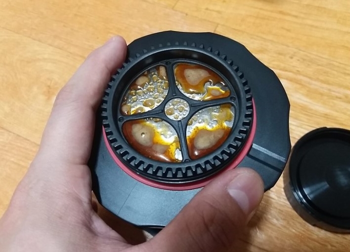 크레마 같은 것이 마이크로 필터 밖으로 나왔다 들어갔다 하는 것이 재미있습니다.