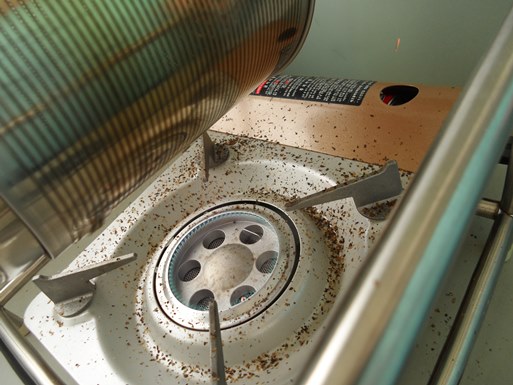 잠시 후, 로스팅 된 원두들을 쿨러팬으로 쏟아냅니다.