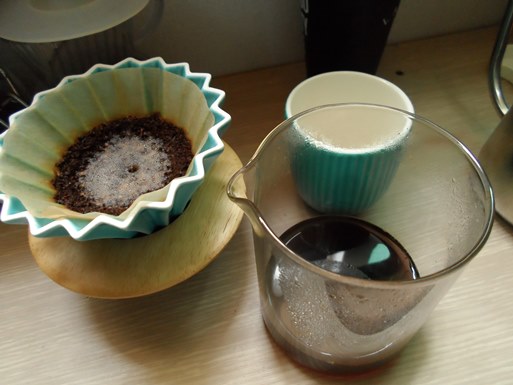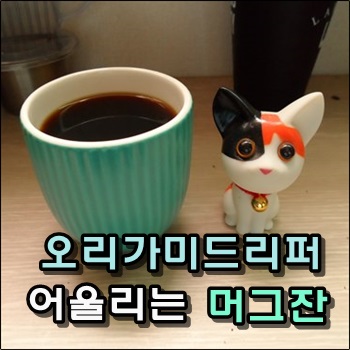 오리가미 드리퍼의 색상처럼 푸른 잔에 커피가 담기다보니