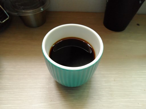 뜸들이기를 마치고 본격적인 추출로 약 110ml정도 추출하였습니다.