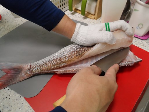 모든 뼈를 제거하였고, 이제 먹기 좋게 잘라주면 됩니다.