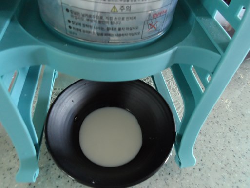 그릇에 우유를 조금 부어주고, 얼음을 갈아줍니다.
