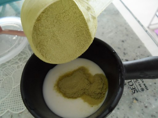 우유와 녹차파우더를 혼합하여 잘 녹여준 후,
