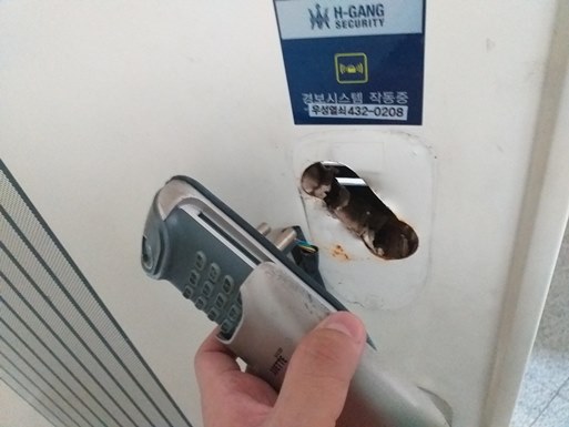현관문 상태가....음....구멍을 뚫는다고 아작을 내었었군요..