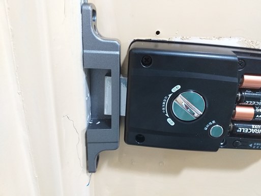문틀에 걸쇠도 설치해 주고, 디지털 도어락이 잘 작동될 수 있게