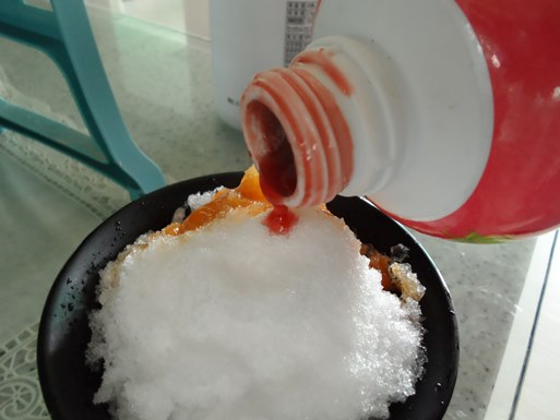 얼음을 갈아 그릇에 가득 채워줍니다.
