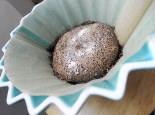 부푼 원두에서 가스가 빠지도록 뜸들이기 시간을 갖습니다.