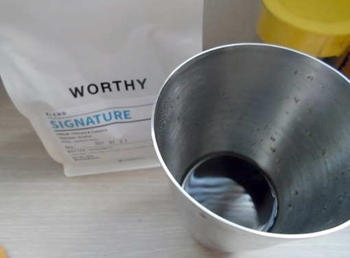 그리고 스텐컵에 에어로프레스를 올려 커피를 추출해 줍니다.