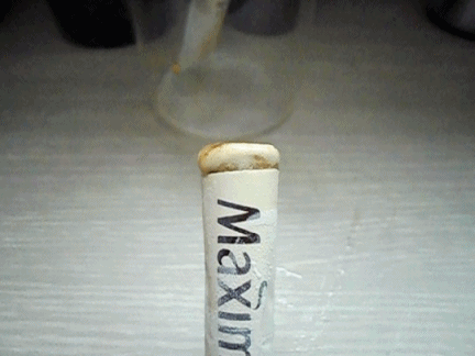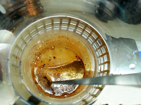 이제 잘 혼합된 음료를 다시 믹스커피 봉에 넣어줍니다.