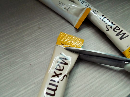 일단 믹스커피 절취부분을 잘라줍니다.