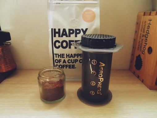 코만단테로 원두를 분쇄한 후 에어로프레스 안에 넣어줍니다.