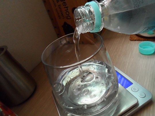 빈 유리잔에 먼저 탄산수 160ml를 넣어줍니다.